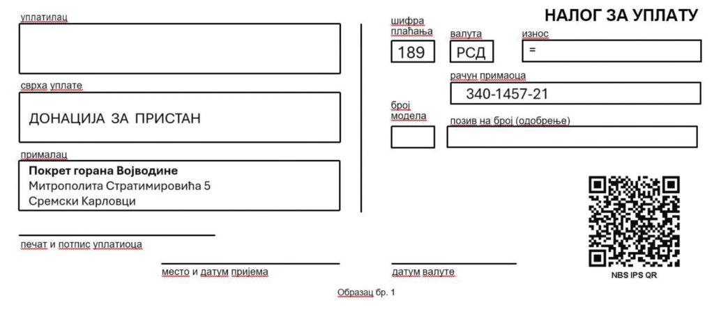 Ako želite da ostanete anonimni, u prostor Svrha uplate upišite: Donacija za pristan – anonimno